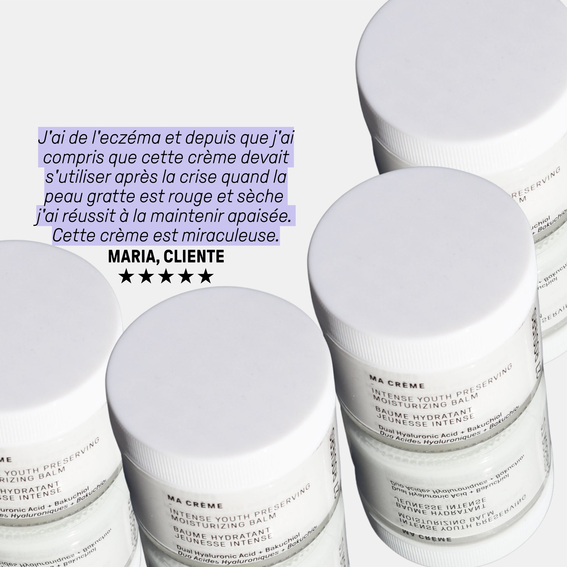 "J'ai commencé à appliquer Ma Crème sur une plaque sèche post eczéma. immédiatement ma peau a été nourri." Max
