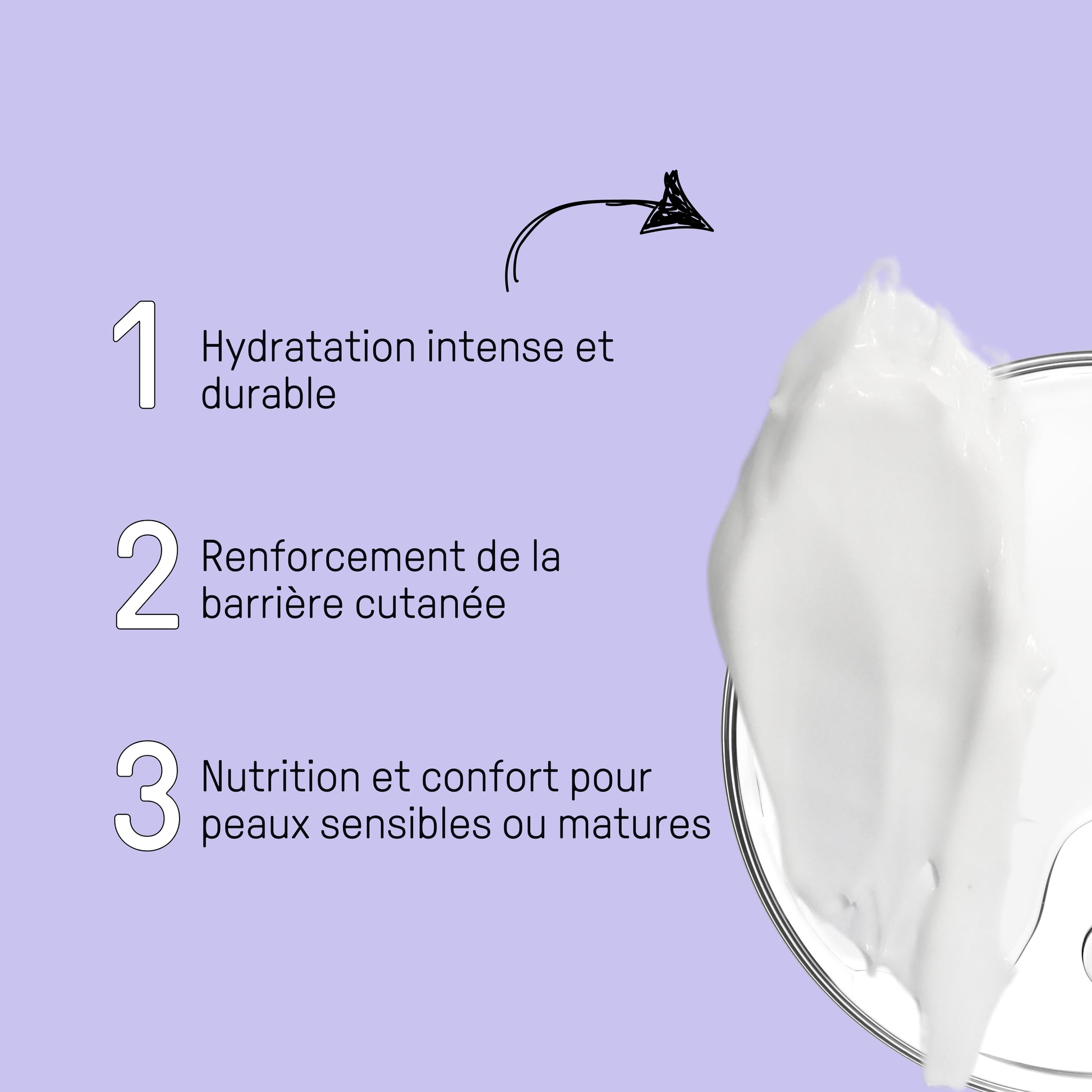 Nourrir en profondeur : Squalane et beurre de karité renforcent la barrière cutanée, hydratent intensément et protègent des agressions extérieures.