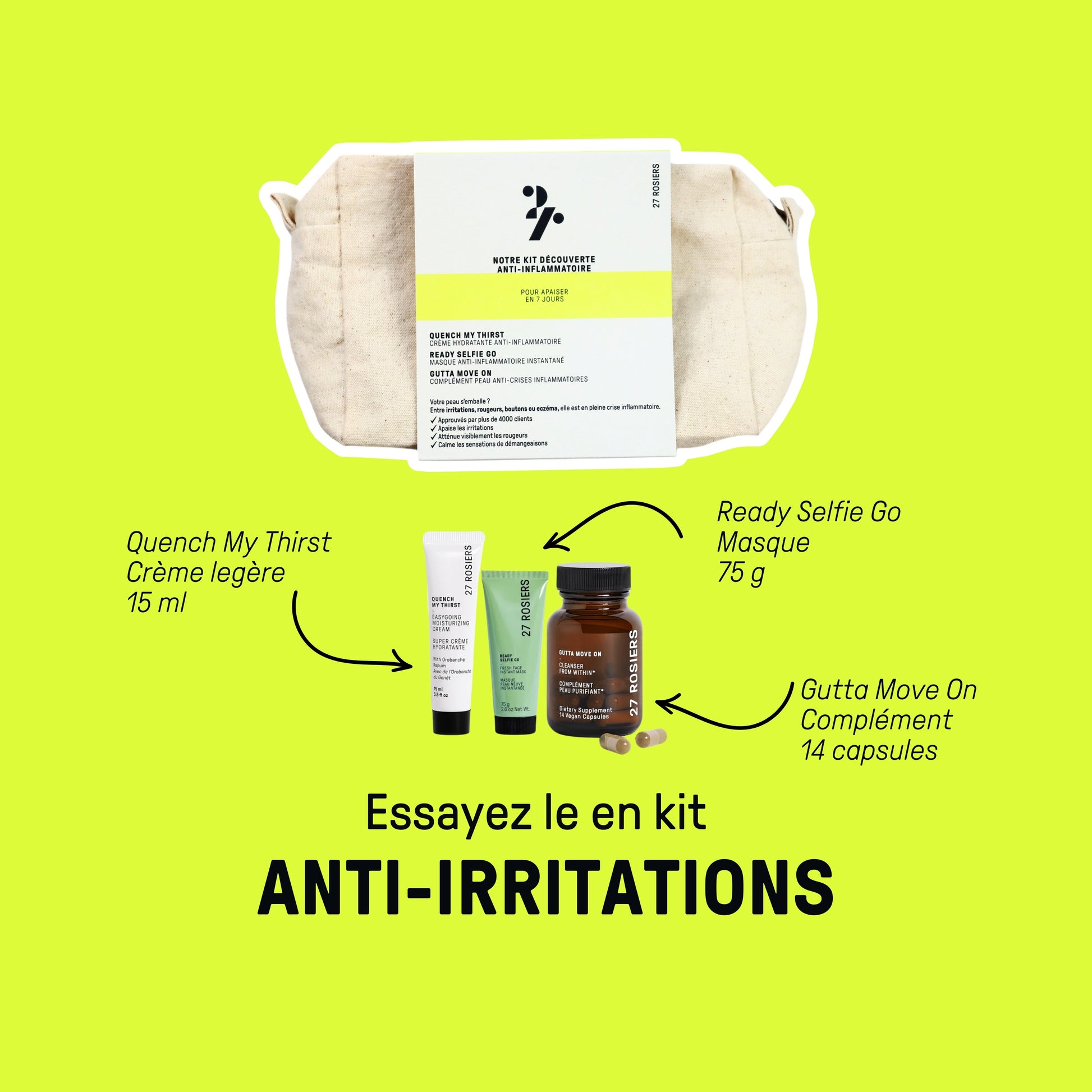 "La deuxième semaine je ne l'ai utilisé que 2 fois dans la semaine et ma plaque n'est pas revenue. Ma peau pouvait enfin accepter autre chose que le masque. J'ai commencé à l'hydrater avec Quench My Thirst." Alix